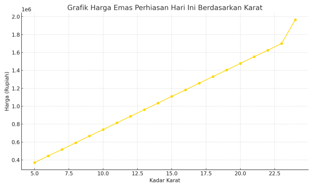 Untuk melihat perbandingan harga perhiasan secara visual, berikut grafik harga emas perhiasan hari ini berdasarkan kadar karat.